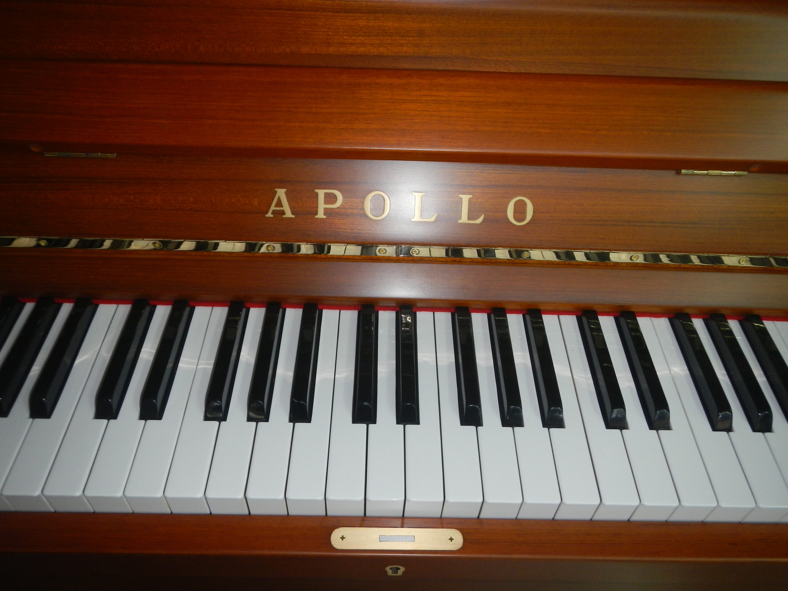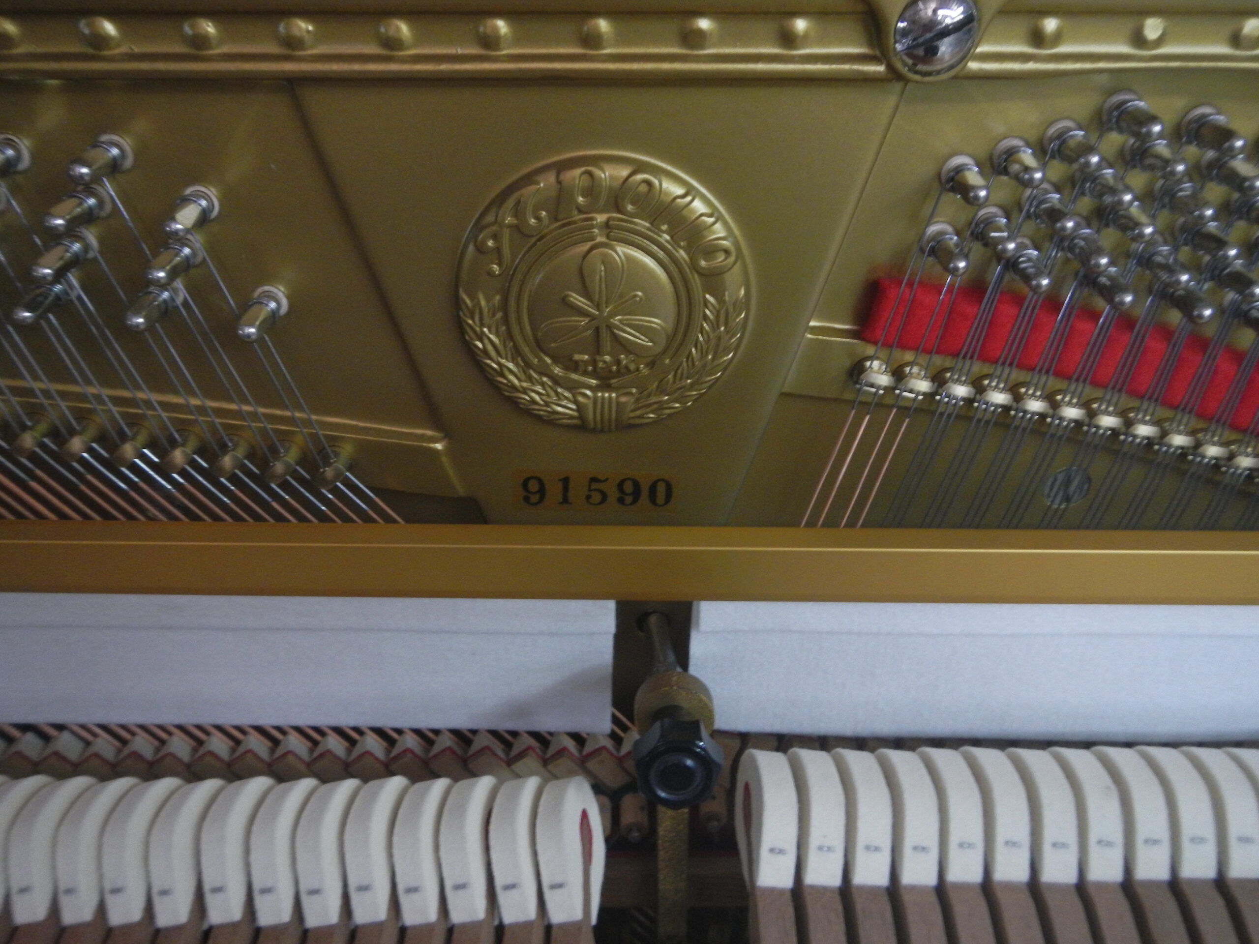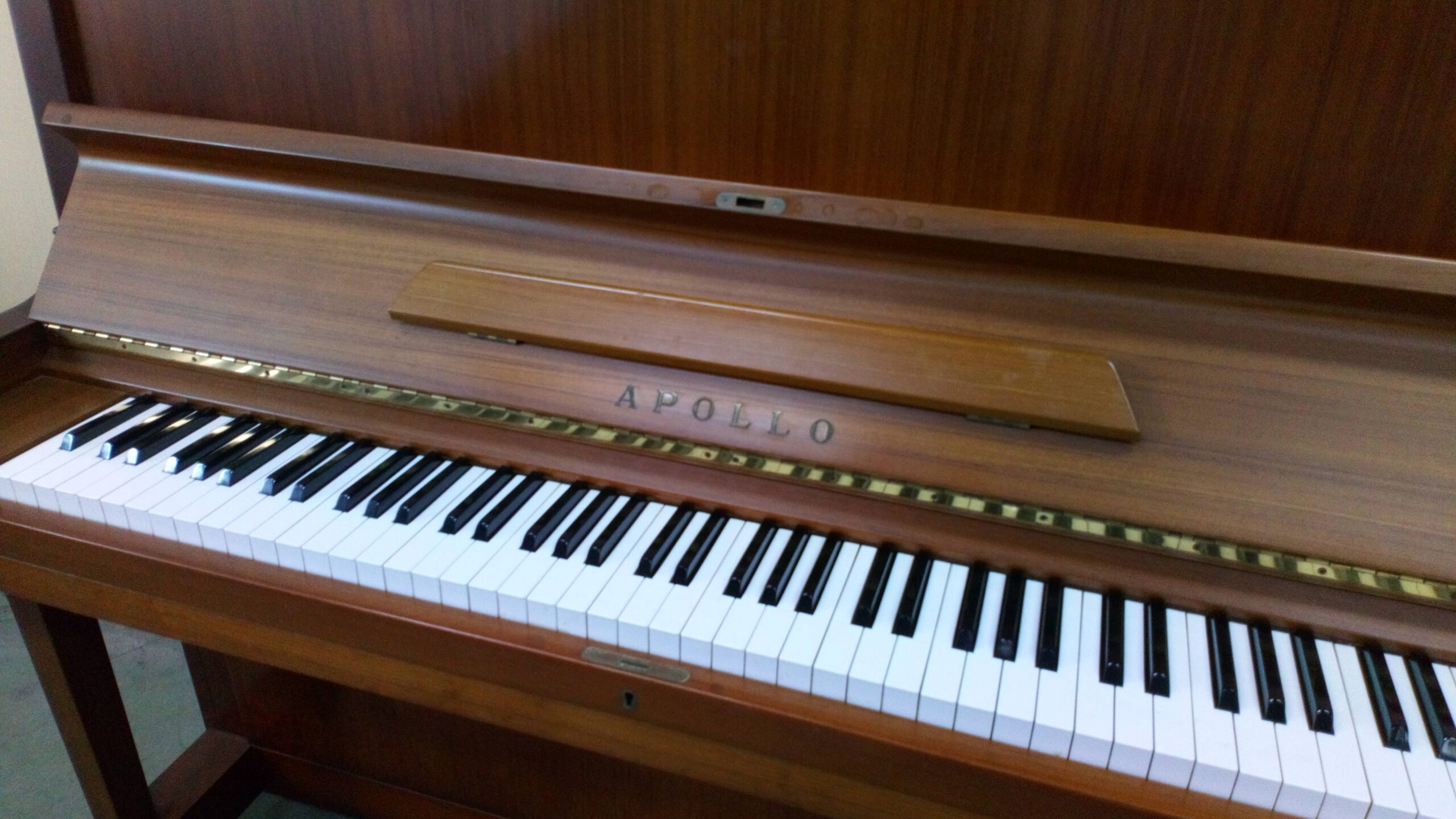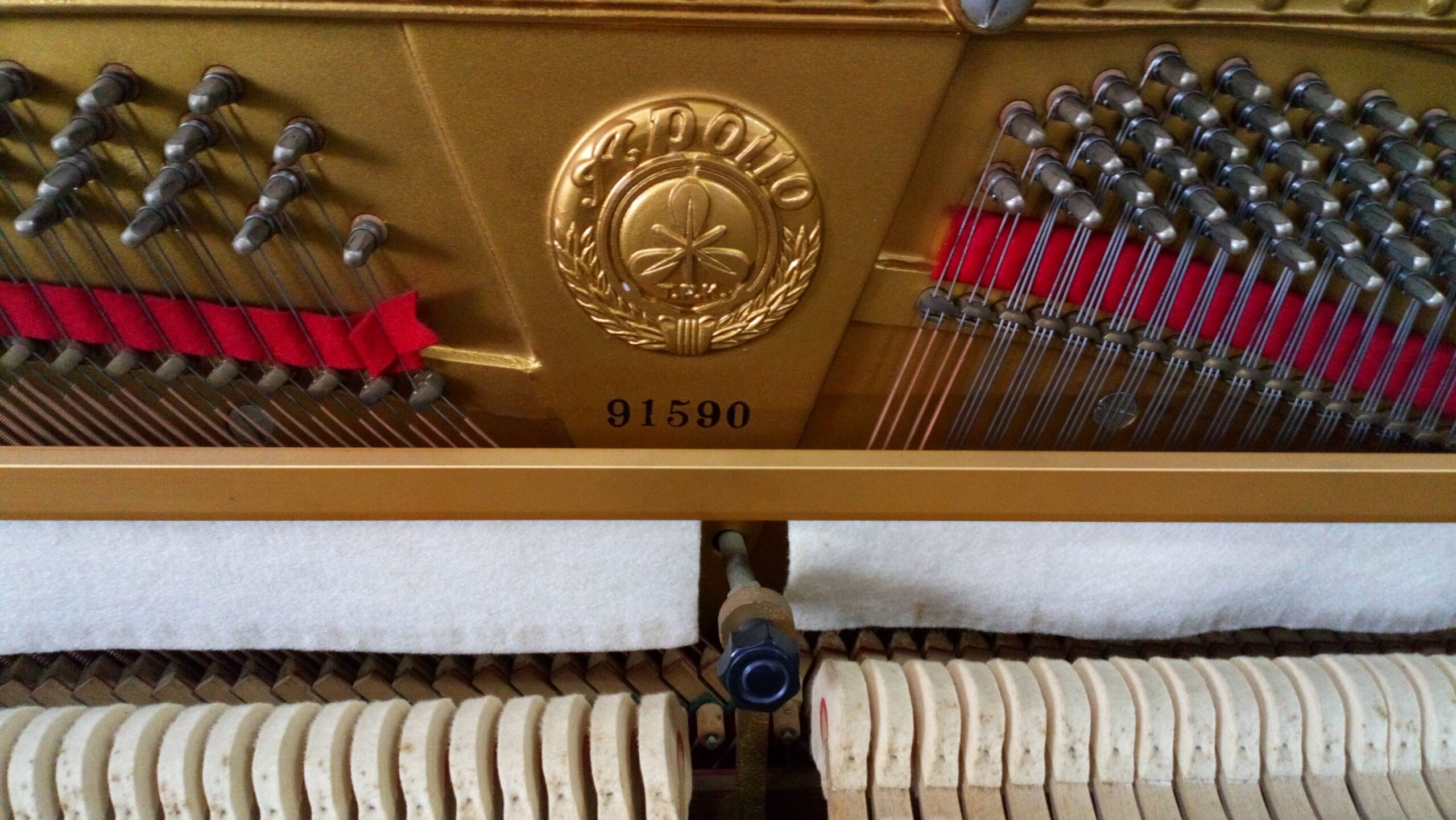 家の新築建替えの為一度ピアノを出して、建築中に修理をして竣工迄保管を希望されました。アポロの最高機種で、ドイツレンナー社製アクションと象牙鍵盤仕様でした。外装は天然木のチーク化粧板を使っており、高級家具のような佇まいです。象牙は昔のような継象牙ではなく1枚物の高級品ででした。1977年製造で48年経過しています。50年近いく経過していますので①極コースでの御希望でした。ピアノ椅子もピアノに色を合わせて塗装しました。