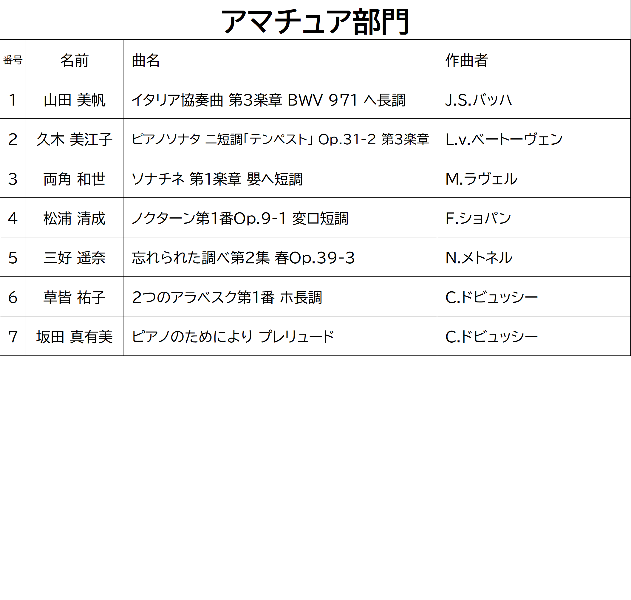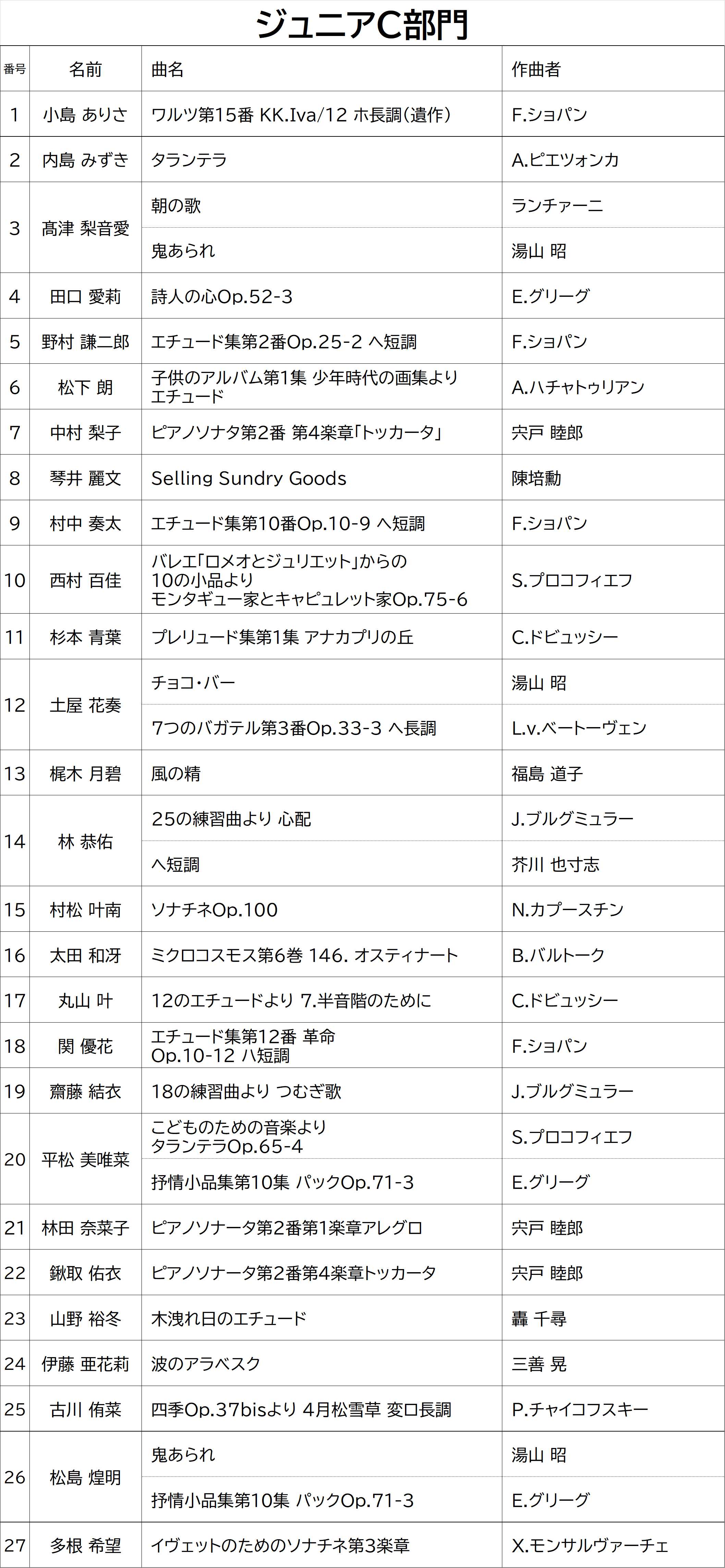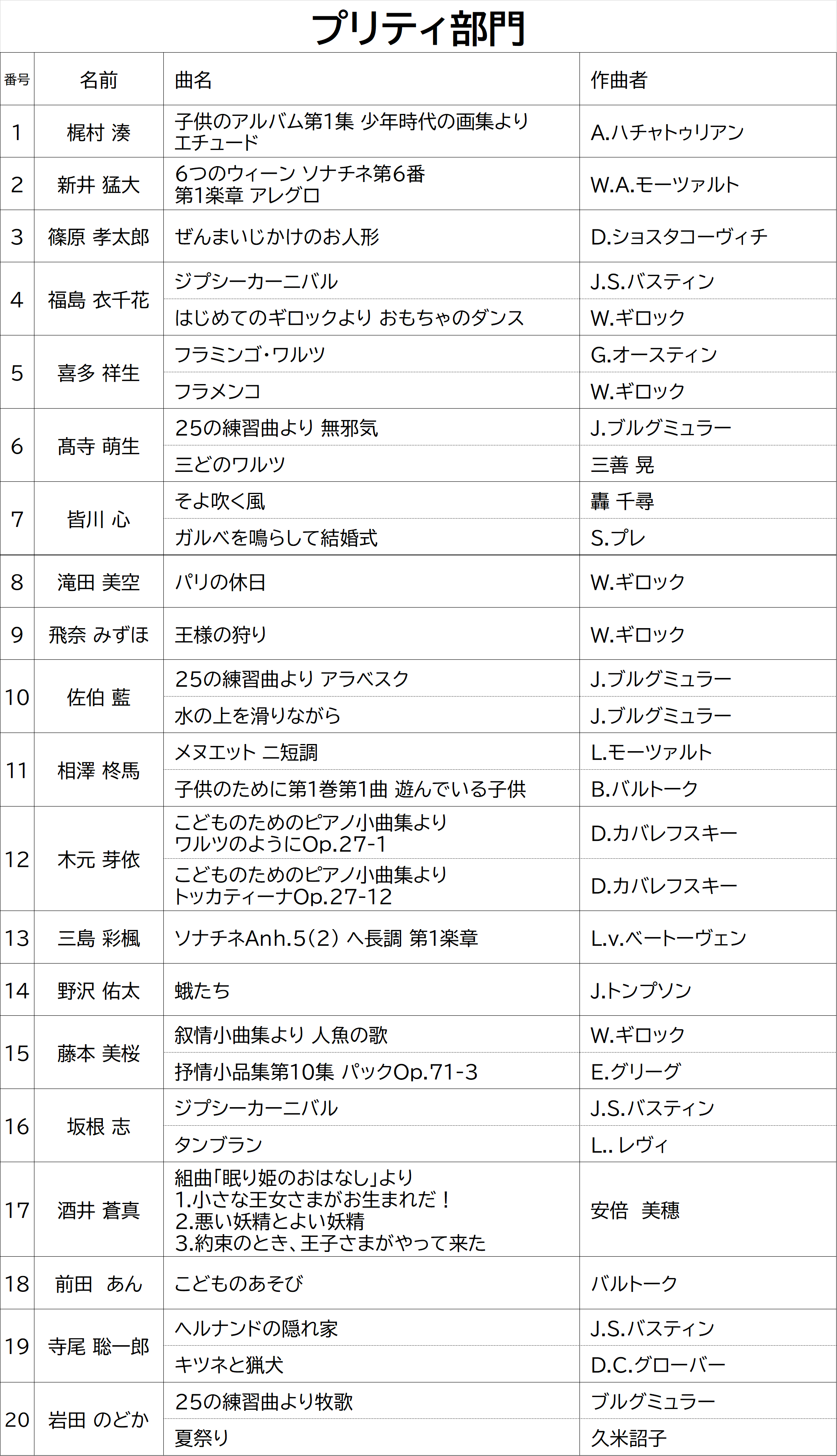 第24回PIARAピアノコンクールファイナル出場者一覧(8/3)
