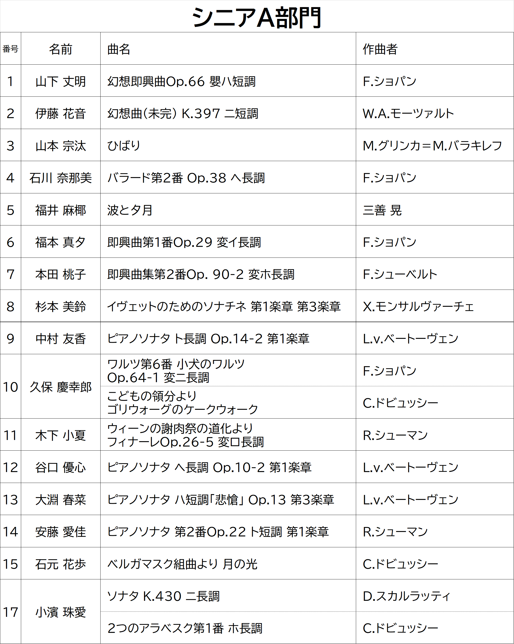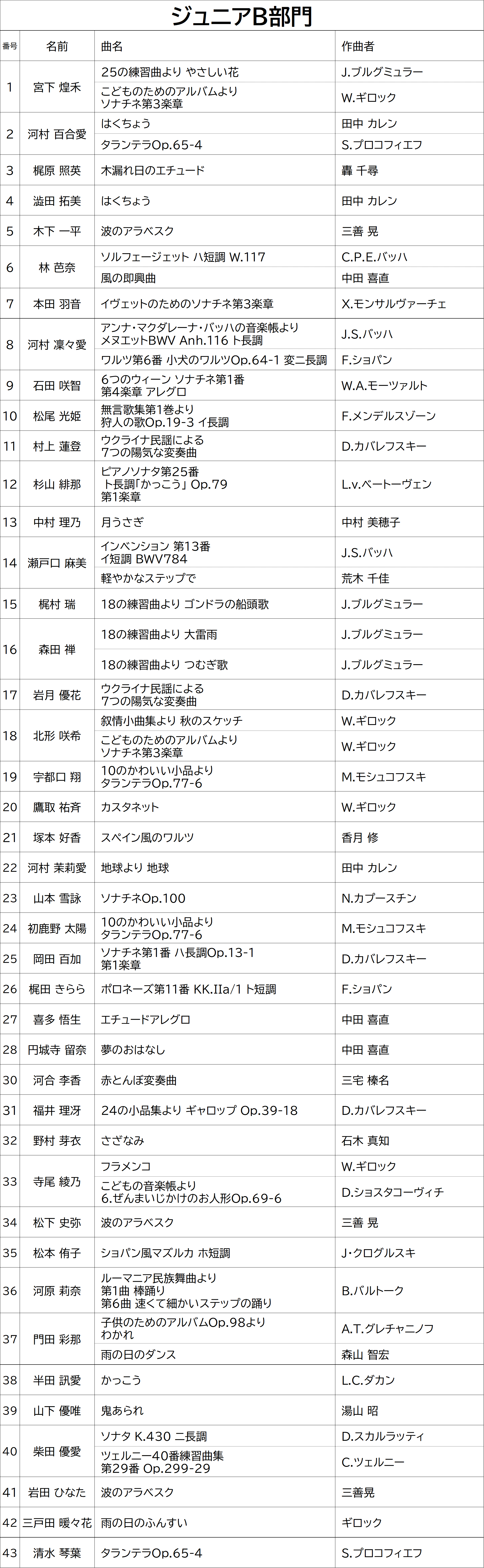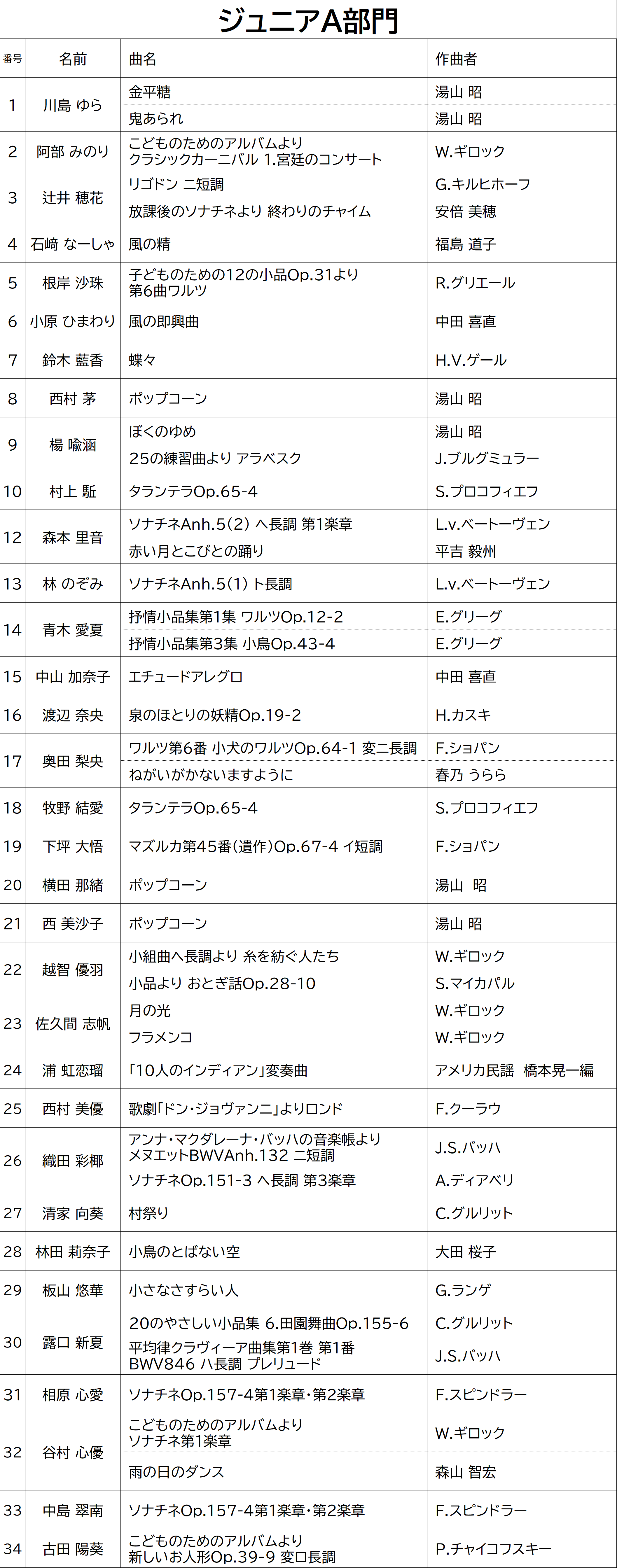 第24回PIARAピアノコンクールファイナル出場者一覧(8/3)